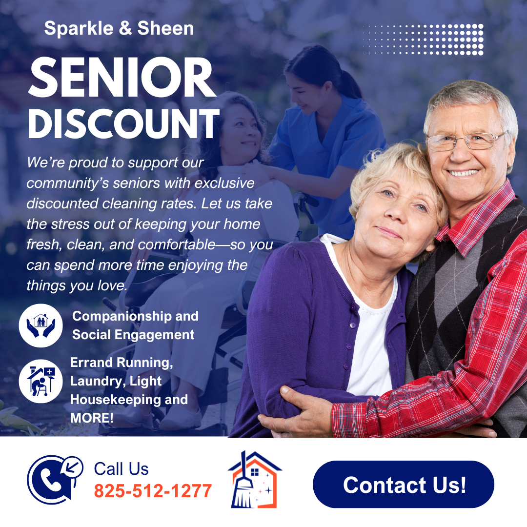 Seniors Discount: Receive Seniors Discounted Rate on all cleaning services as our way of showing appreciation for your continued trust and support.